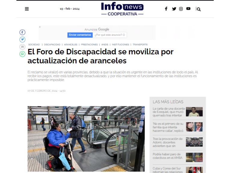 En el día de hoy, miércoles 7 de febrero, el Foro Permanente para la Promoción y la Defensa de los Derechos de las Personas con Discapacidad -junto a sus organizaciones…